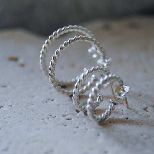 Mini Huggie Rope Hoops- Silver